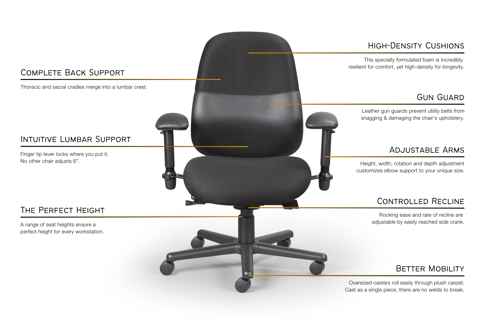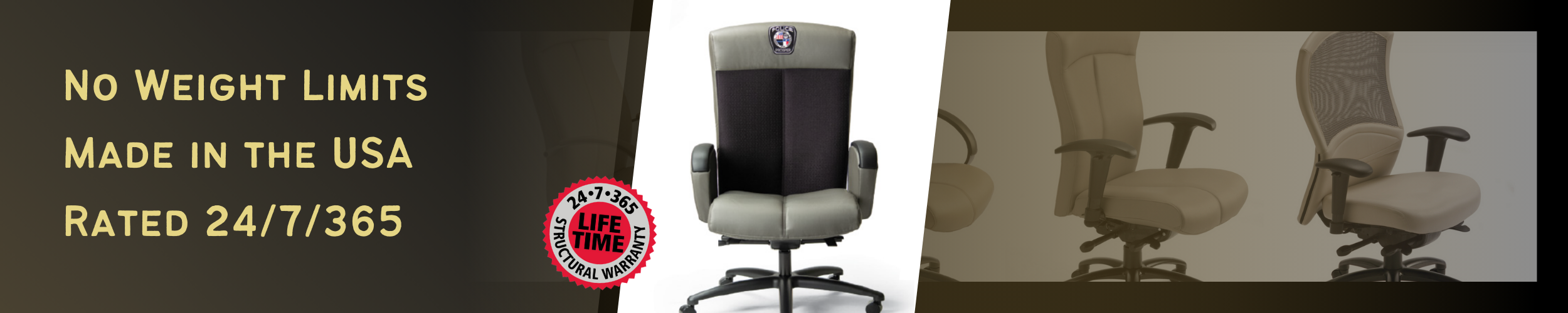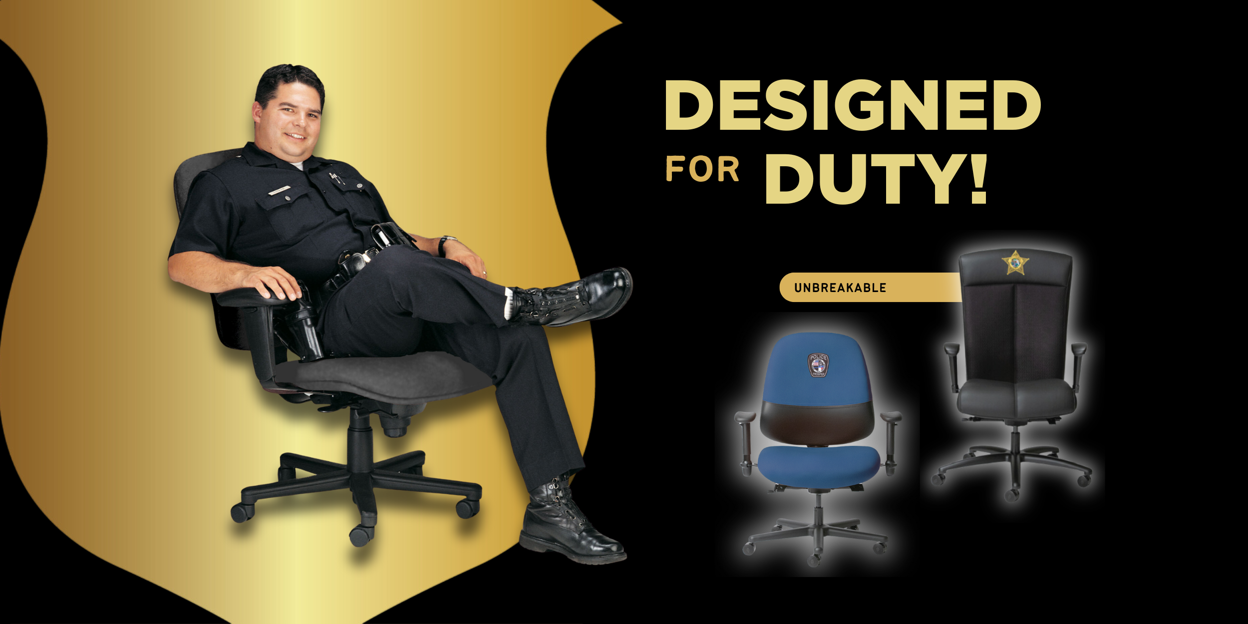 Police Seating provides unbreakable chairs for our law enforcement officers. If it breaks, we'll fix it for free!